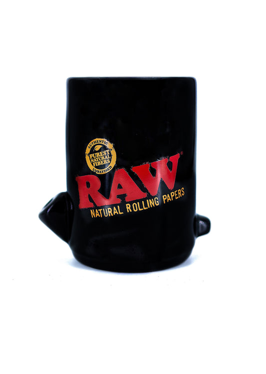 RAW Wake Up & Bake Up Mug - Sip & Smoke Ceramic Mug - Black