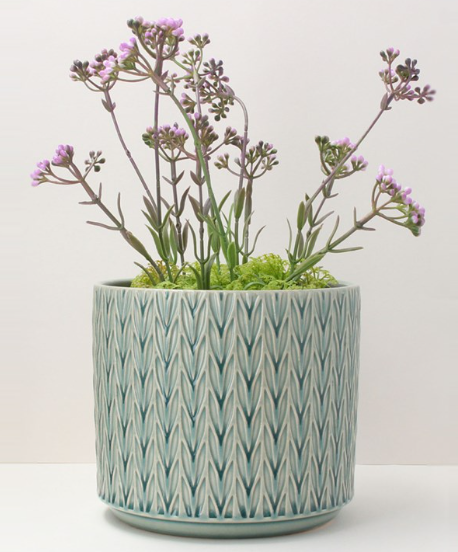 Green Trellis Flower Stoneware Pot Cover, 14cm