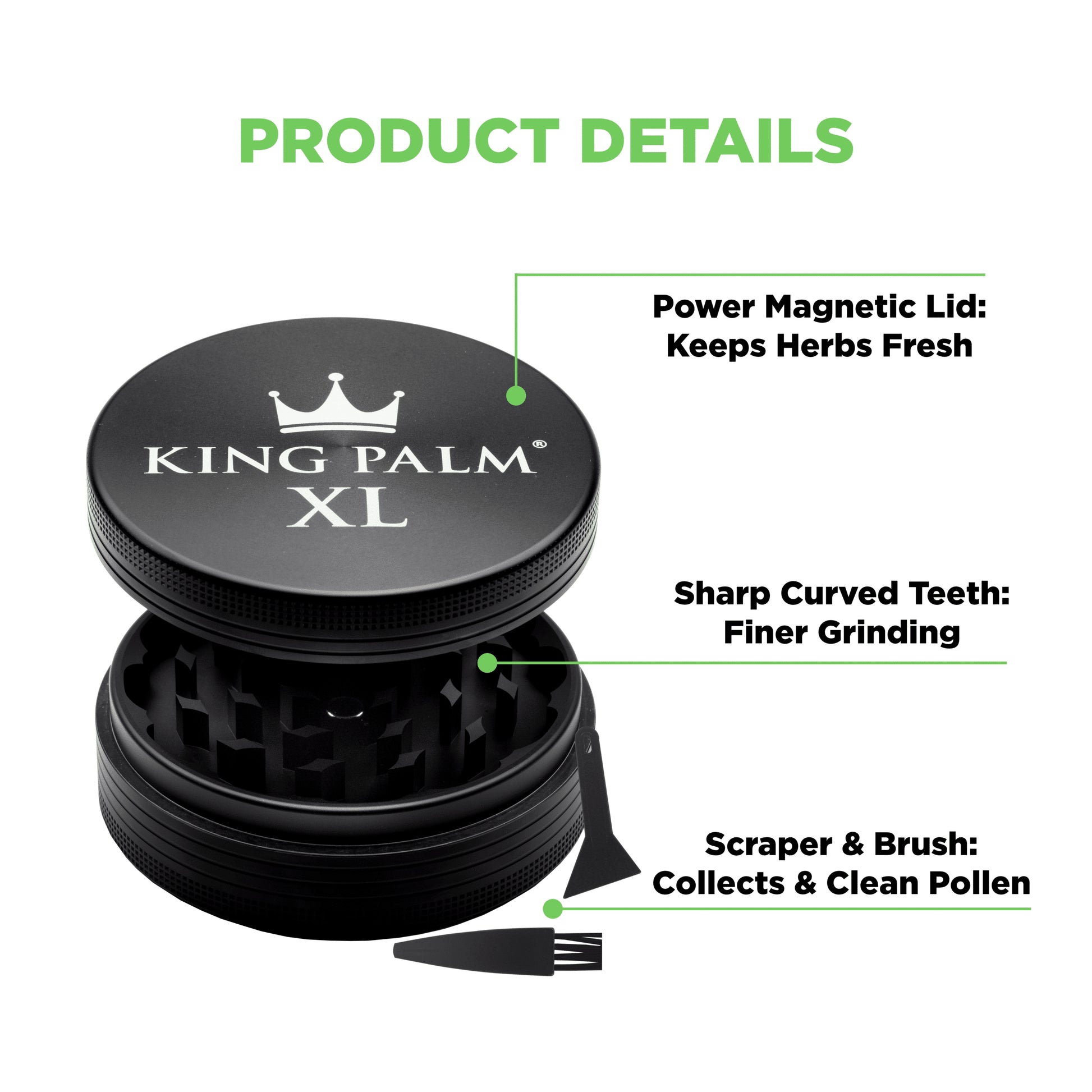 This high-quality large two-piece grinder is the perfect accessory to any smoking collection. The sleek black grinder cuts through your cannabis nugs with ease, grinding it up into a wonderful chunky consistency. King Palm crafts this grinder using anodized aluminum and a ceramic coating for ultimate durability.