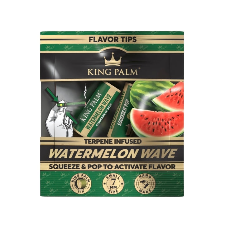 Enhance the experience of smoking your favorite wraps or rolling papers with King Palm’s Watermelon Wave filter tips. Made from organic corn husk and handcrafted for exceptional filtration, these filters will immediately elevate your smoke session. And, at any point during your sesh, you can squeeze the tips to unleash waves of juicy watermelon flavours.