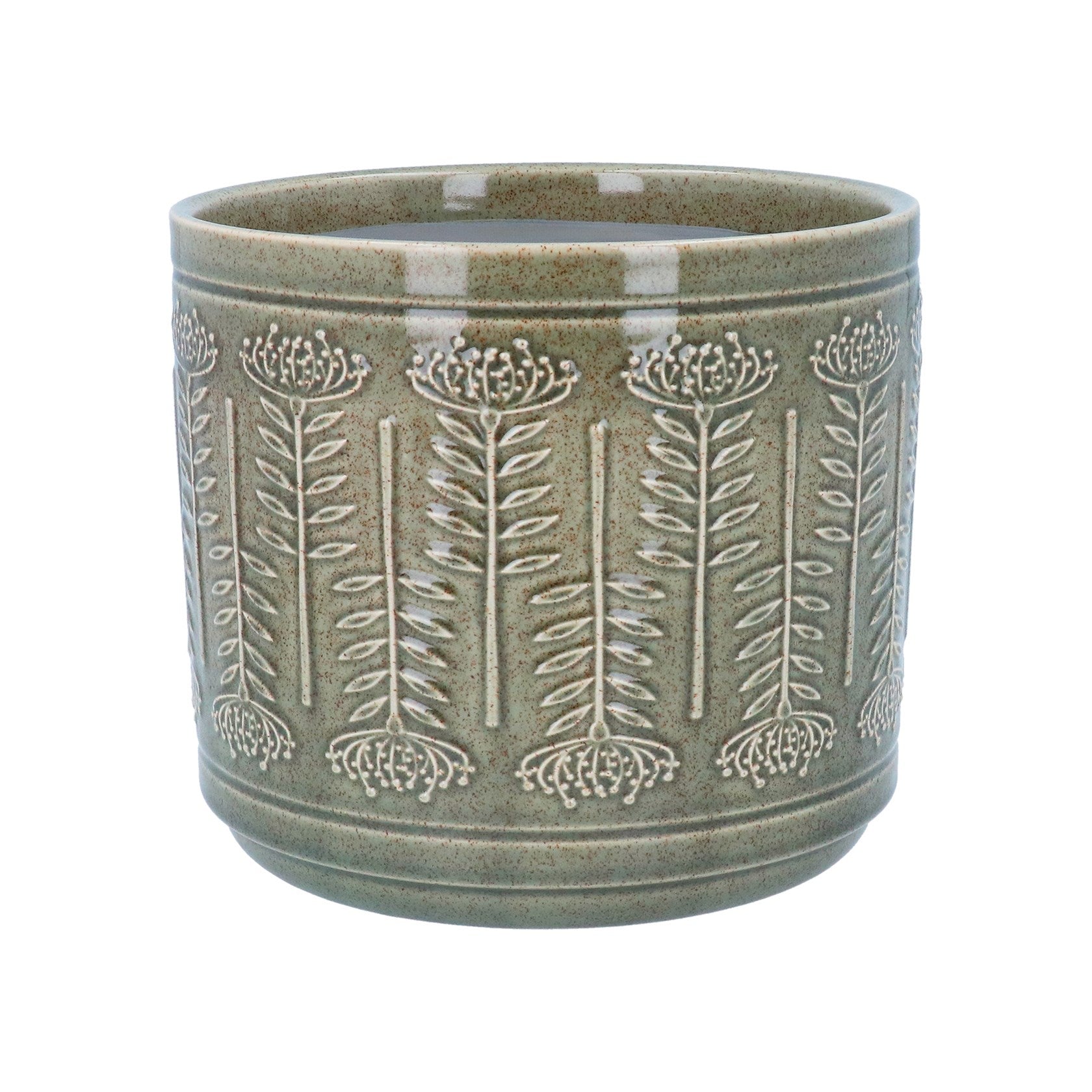 Stoneware Pot Cover 17cm - Dark Sage Rudbeckia