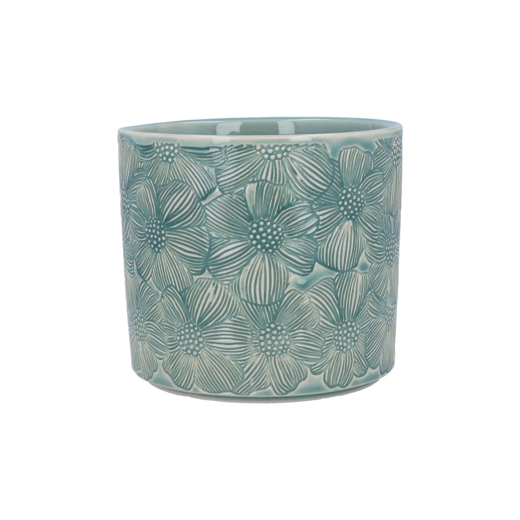 Stoneware Pot Cover - Blue Cosmos, 14cm