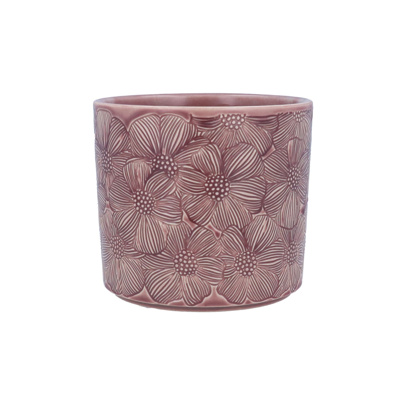 Stoneware Pot Cover - Dusky Pink Cosmos, 14cm